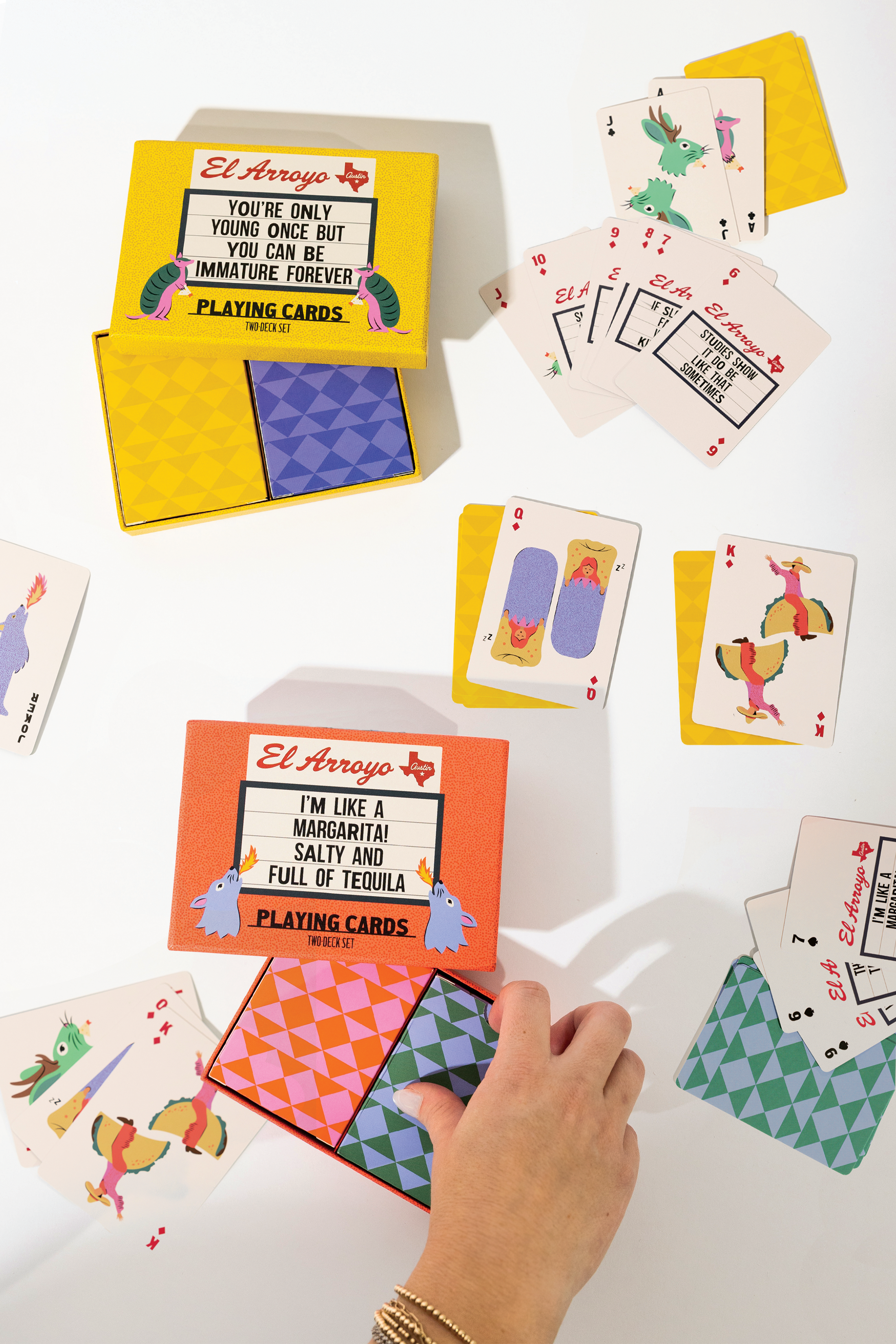 Game night just got a whole lot more fun with El Arroyo playing cards! Our Game Night Deck features two sets of cards with 36 different family-friendly marquee signs each that will certainly make any game a lot more interesting.