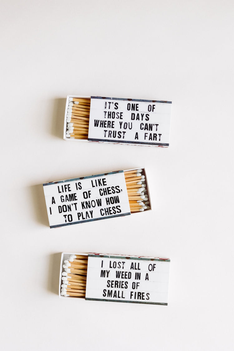 Matches are a necessity... Why not make them a cute one? Display your mini marquee on a coffee table, bathroom counter, or kitchen table! Collect all five snarky styles 🔥