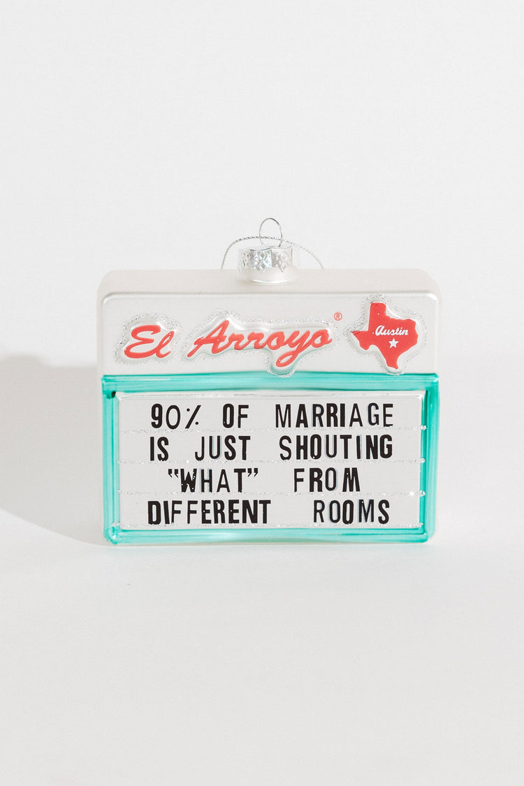 This one of a kind ornament is sure to be a festive hit! Made from mercury glass, this marvelous marquee adds a touch of humor to your tree that can be treasured for years to come.