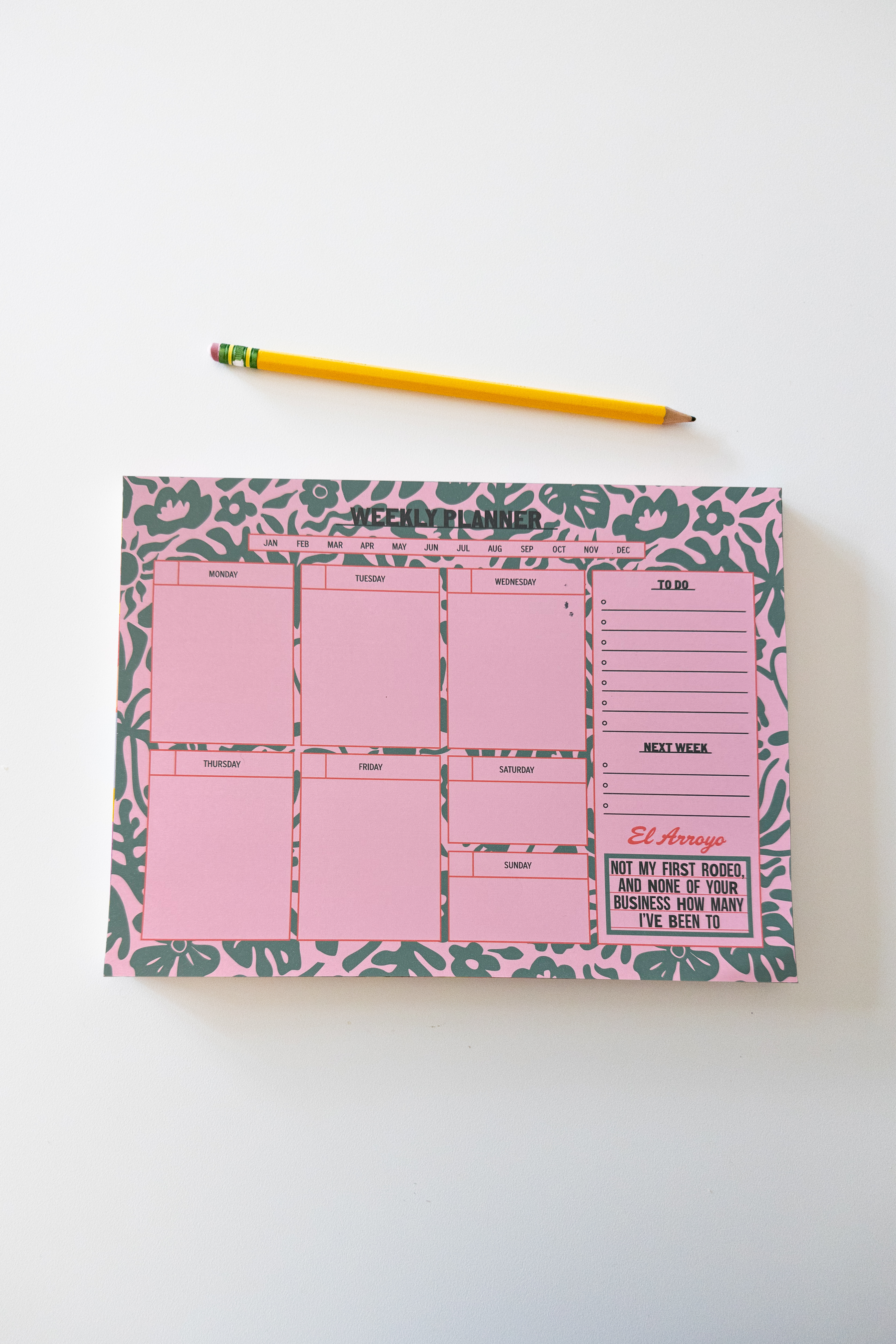 This undated weekly planner allows you to maximize your time any time of the year! Bonus- each week, enjoy a new marquee sign that offers a fresh quote, inspirational message, or witty remark to keep you motivated and entertained!